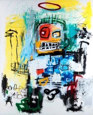 Julio Parra is a contemporary Colombian artist based in Medellín. His vibrant and rebellious style has resulted in him being coined the “Colombian Basquiat”. Parra’s effervescent scribbles and brushstrokes splashed against a lightly hued, often stark white backdrop creates a bold form of primitivism, showing a strong communicative message with elements of coded content within the work.