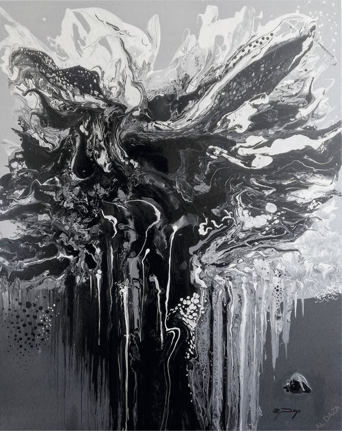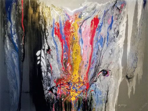 His technique surpasses those of regular abstractionists, by developing a thought provoking analogue of a personal pictorial through which he addresses the complex and controversial issues of the future of humanity: such as global warming, ecological devastation, the exploitation of the planets natural resources and species.